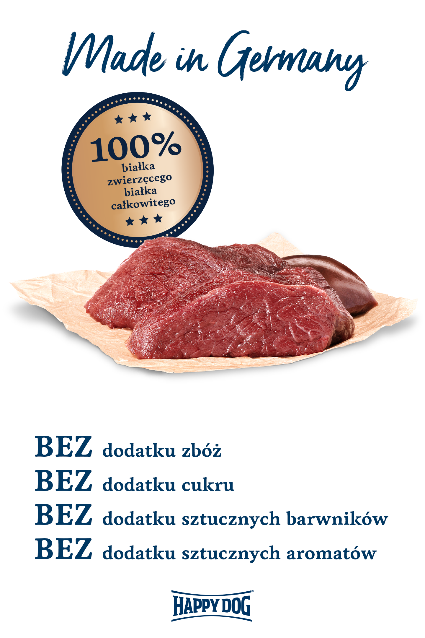 Czy Twój pies jest miłośnikiem mięsa? W takim razie puszki Happy Dog Sensible Pure są dla niego właściwe. Ponieważ wysokiej jakości karma mokra jest wyprodukowana z mięsa i podrobów pochodzących tylko z jednego źródła białka. Nie stosujemy dodatku zbóż, cukru, sztucznych barwników czy aromatów.
