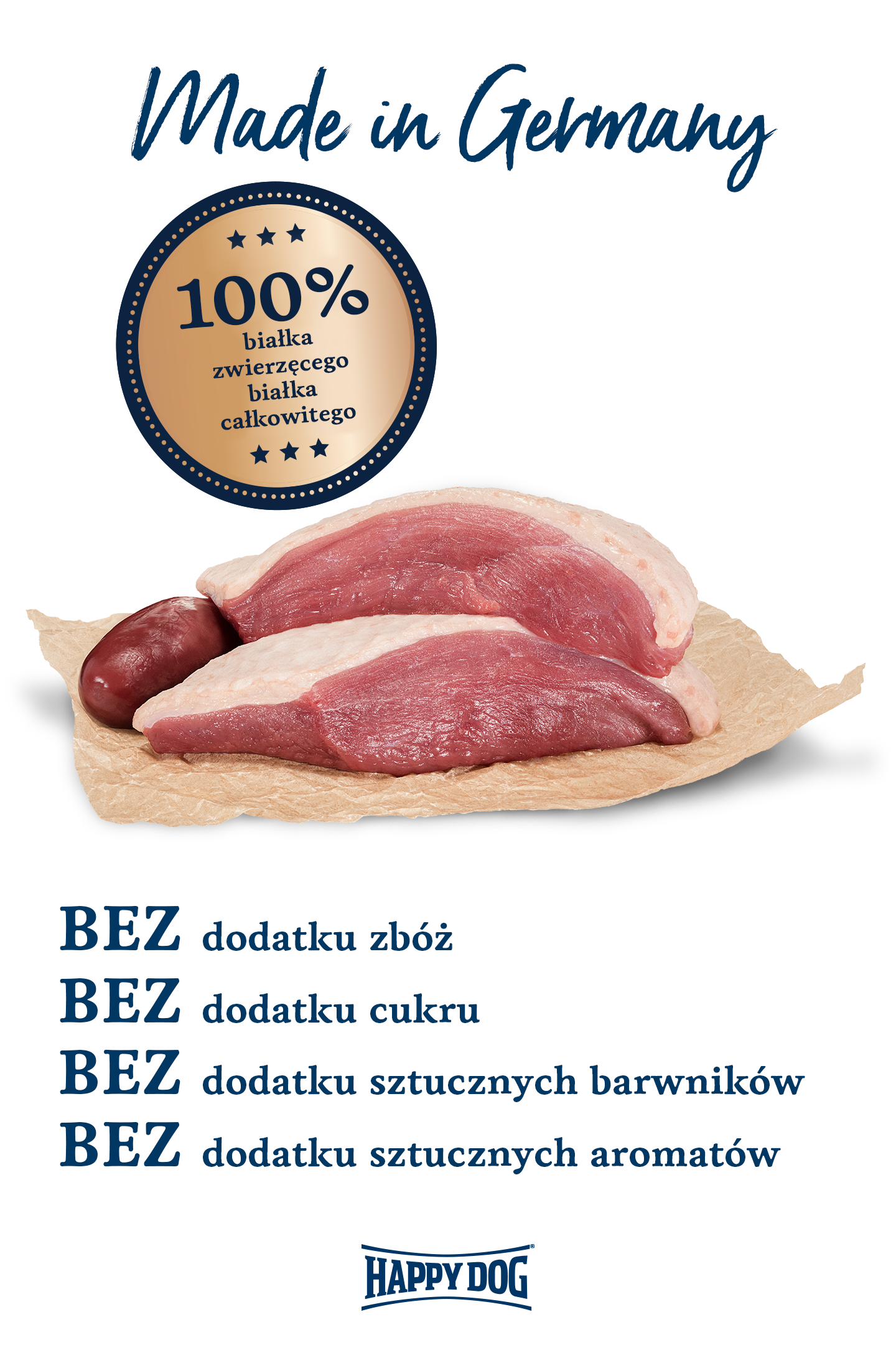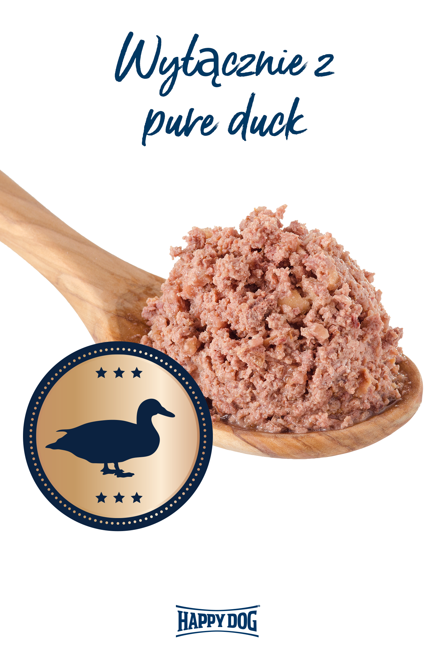 Napełnij miskę swojego psa Happy Dog Sensible Pure France, czysto mięsną karmą zawierającą w 100 % najlepsze mięso i podroby wyłącznie z kaczki. Dzięki naszej karmie mokrej możesz karmić swojego czworonożnego przyjaciela w sposób dostosowany do jego gatunku. Oczywiście nie zawiera ona dodatku soi, cukru, sztucznych barwników czy aromatów.
