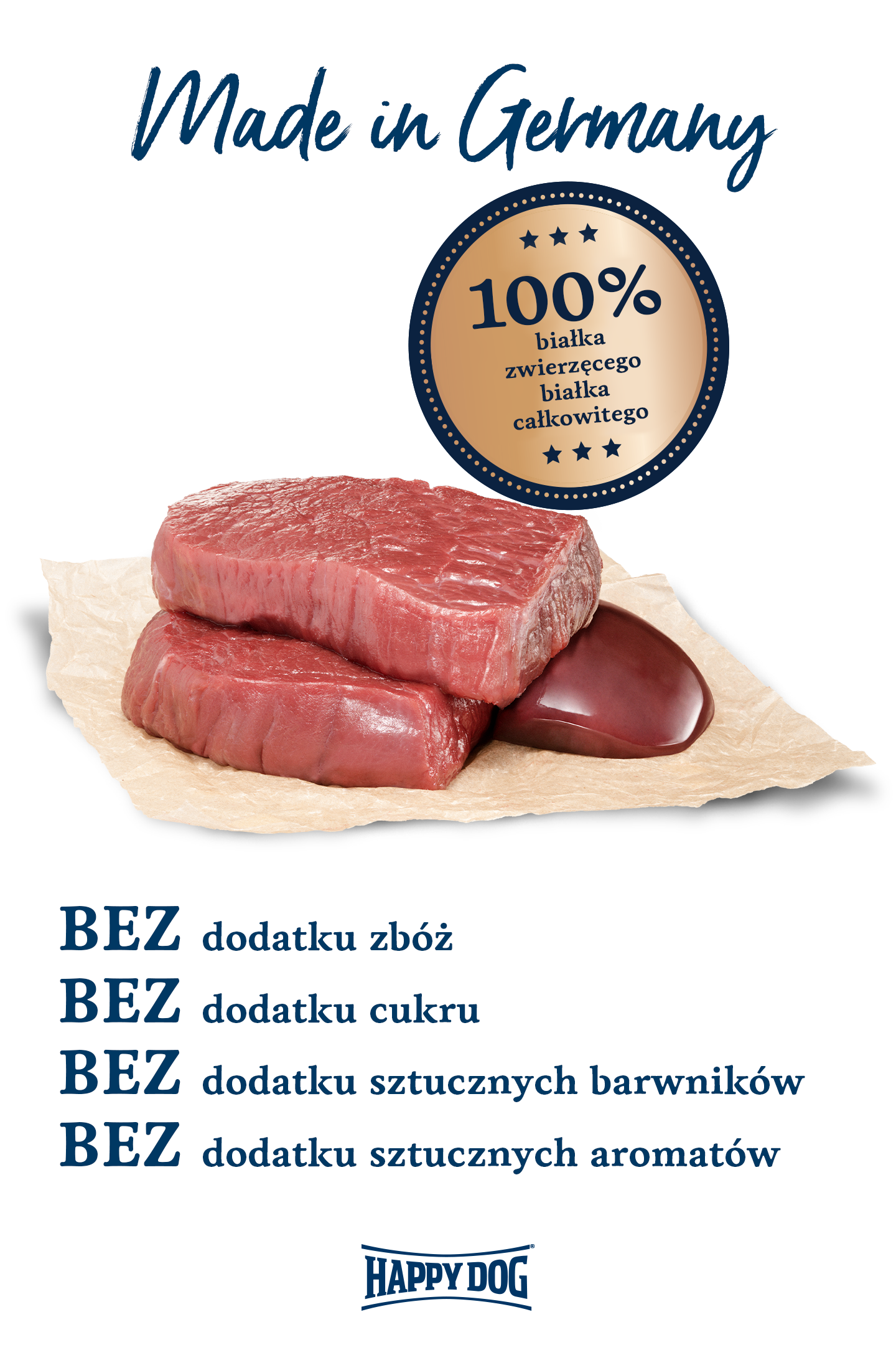 Karma czysto mięsna jest idealna do samodzielnego karmienia, jak również do przyrządzania domowych posiłków i może być idealnie łączona z mieszanką płatków Happy Dog Flocken Mixer. Mieszanka płatków dostarcza ważny błonnik pochodzenia warzywnego, który wspomaga trawienie oraz węglowodany jako źródło energii dla zdrowej diety.