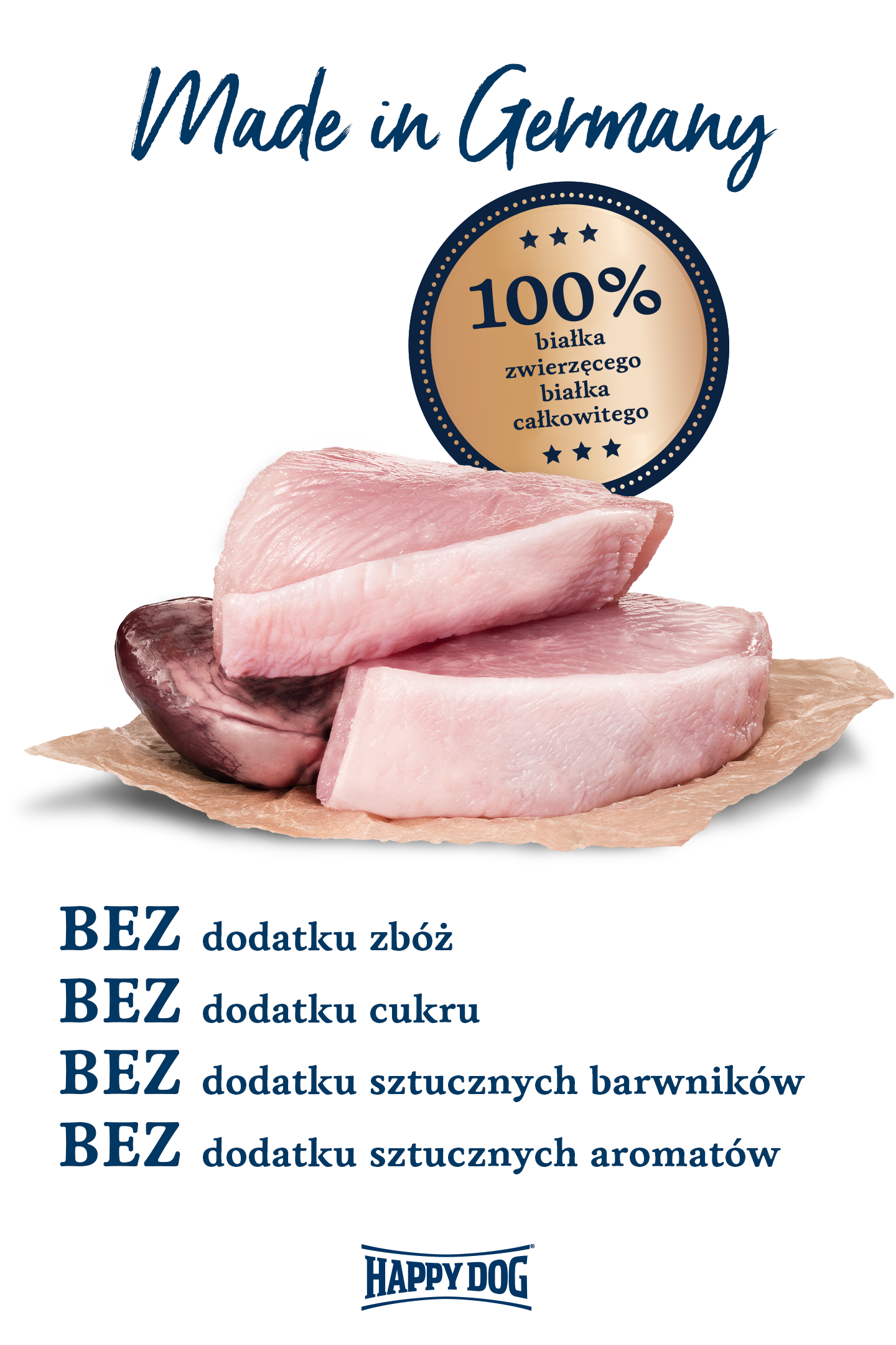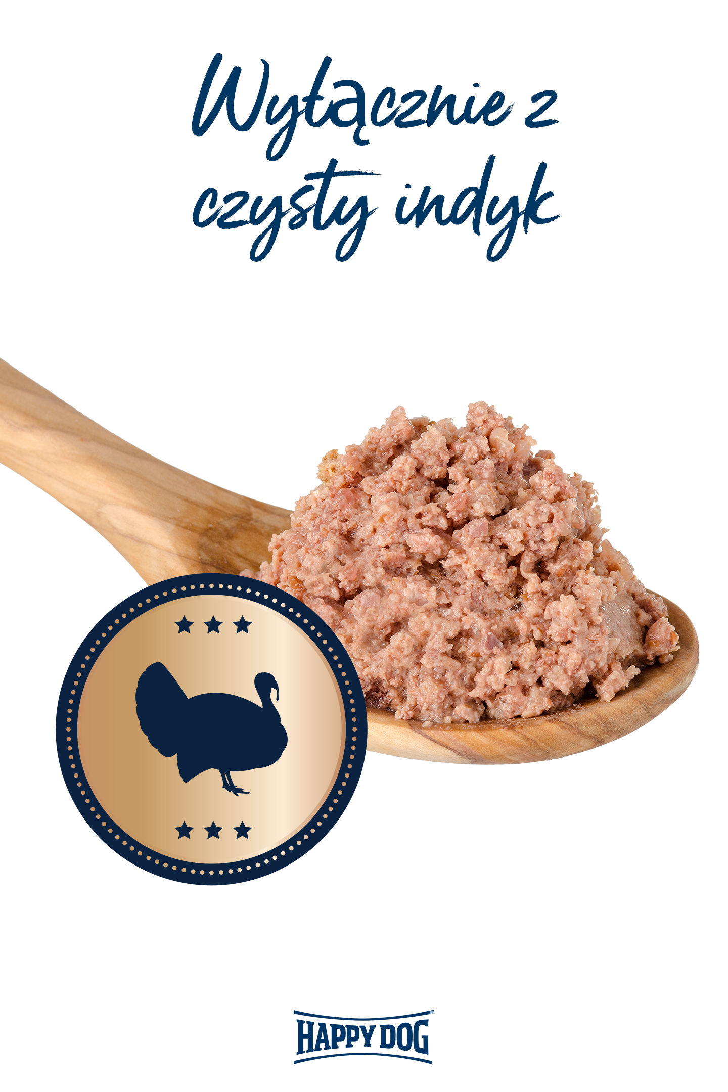 Szukasz karmy dla psa z dużą zawartością mięsa, najlepiej bez zbóż i sztucznych dodatków? W takim razie nasze puszki Happy Dog Sensible Pure są idealne dla Ciebie i Twojego pupila. Ta karma mokra dla psów zawiera tylko wartościowe mięso z jednego gatunku i bogate w witaminy podroby. Happy Dog Sensible Pure Texas zawiera w 100 % pysznego indyka - bez dodatku zbóż, soi i cukru. Natomiast z dodatkową porcją niezbędnych witamin, minerałów i mikroelementów.