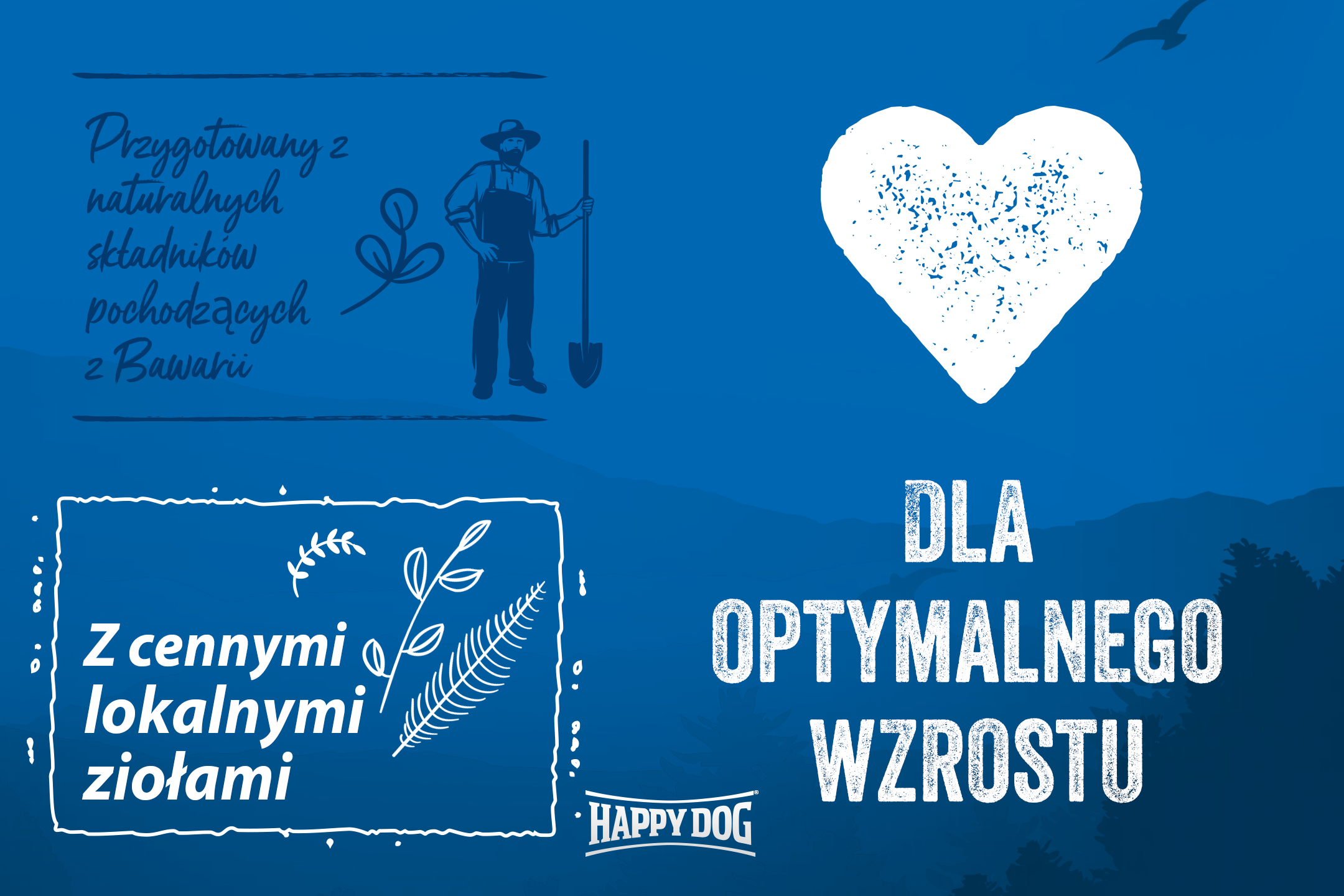 Intensywność wzrostu zmniejsza się systematycznie od 7. miesiąca życia. Dlatego ważne jest, aby dostosować karmę do zmienionego zapotrzebowania na białko i energię, aby zapobiec żywieniowym zaburzeniom wzrostu. Happy Dog NaturCroq Junior jest optymalnie dostosowana do potrzeb młodych psów i zapewnia harmonijny i zdrowy wzrost młodego psa. Oprócz obniżonej zawartości energii, dostosowana jest również zawartość białka. Receptura karmy Happy Dog NaturCroq Junior z wartościowymi, zwierzęcymi białkami i cennymi regionalnymi pełnoziarnistymi zbożami zapewnia optymalny rozwój. Cenne kwasy tłuszczowe omega-3 i omega-6 zapewniają nienaruszoną barierę ochronną skóry i lśniącą sierść. Wyjątkowo smaczna receptura zawiera również wartościowe lokalne zioła.