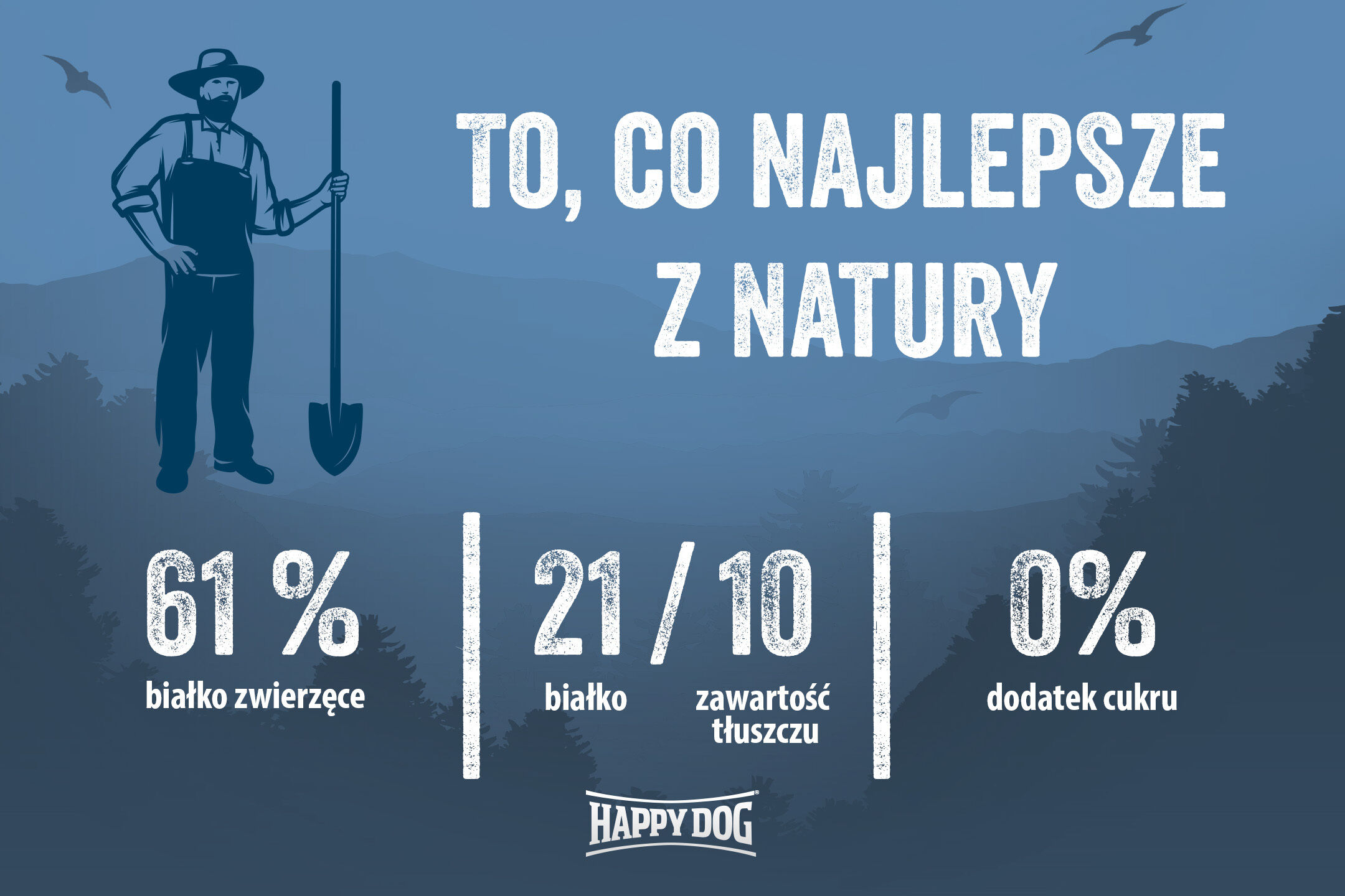 Dzięki wysokowartościowym białkom zwierzęcym i wartościowym, regionalnym pełnoziarnistym zbożom, Happy Dog NaturCroq XXL dostarcza Twojemu psu wszystkich niezbędnych składników odżywczych i witamin. Dzięki swoim naturalnym składnikom nasza dostosowana do danego gatunku karma sucha dla psów jest również szczególnie lekkostrawna. Wielkość krokietów NaturCroq XXL została specjalnie dostosowana dla większych psów, aby zapobiec zbyt szybkiemu połykaniu. Zawartość składników odżywczych jest optymalnie dostosowana do zapotrzebowania energetycznego psów dużych ras.