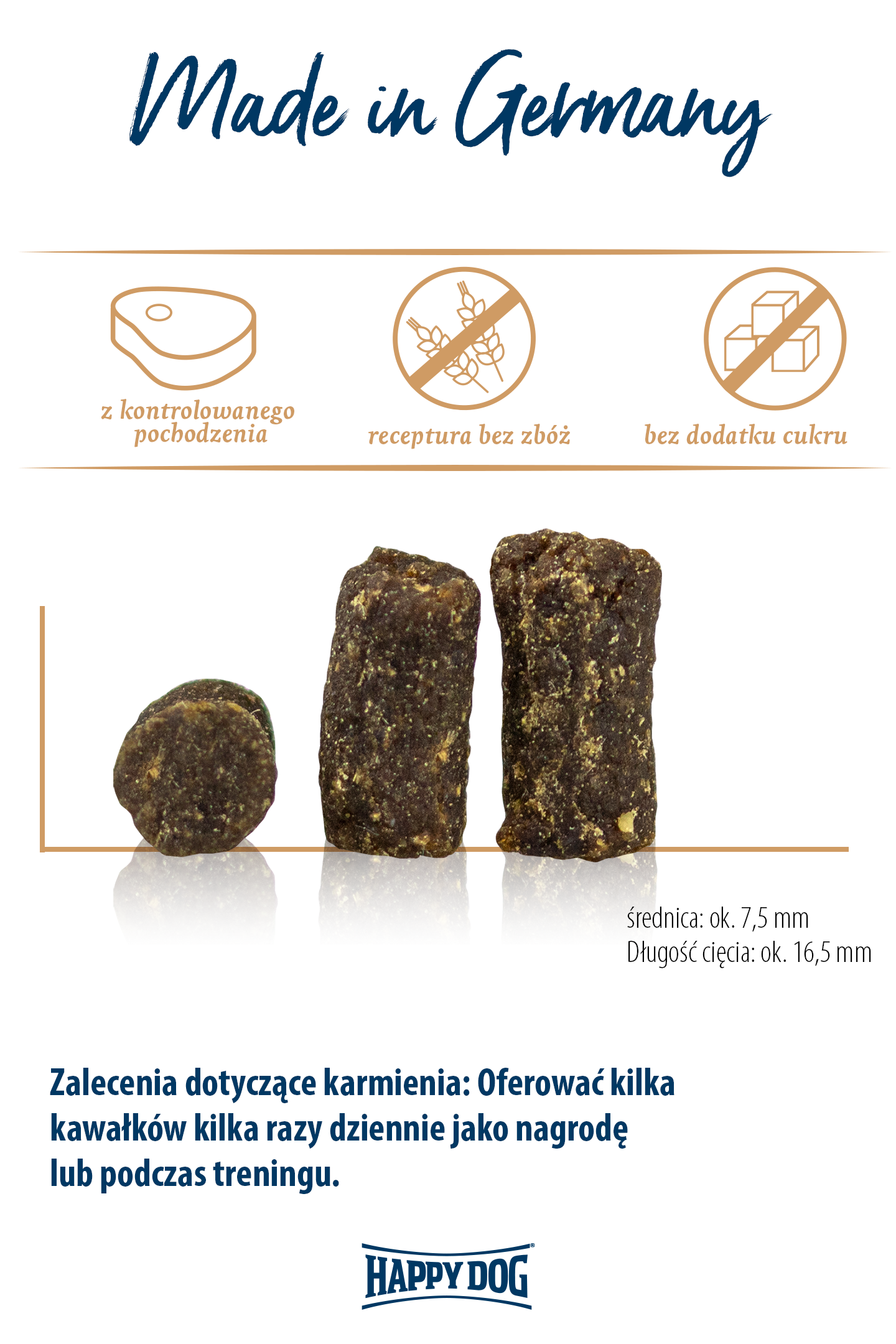 Ta lekkostrawna przekąska z bezglutenowymi ziemniakami jest także idealna dla psów, które mają wrażliwy układ trawienny, jak również dla psów wymagających wszystkich wielkości. Przekąski są łatwe do podzielenia i dlatego perfekcyjnie nadają się podczas szkolenia, lub jako nagroda w międzyczasie. Praktyczne zamknięcie strunowe zapewnia długotrwałą świeżość i oczywiście przekąski są produkowane bez dodatku cukru i konserwantów. Dla nas zrównoważone, odpowiedzialne działanie i najwyższa jakość są na pierwszym miejscu, dlatego też mięso do naszych przekąsek mięsnych pochodzi z identyfikowalnych hodowli w Niemczech, ma najkrótszą możliwą drogę transportu i jest przetwarzane w delikatny sposób.