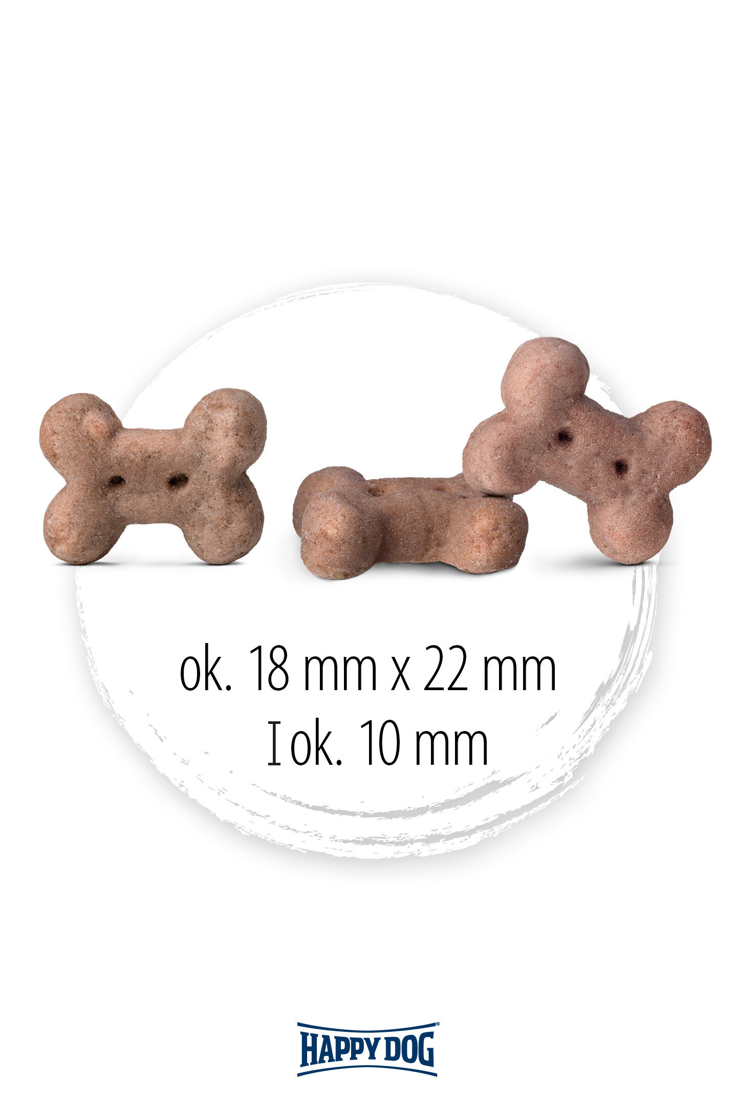 NaturCroq Mini Knochen mit Huhn (mini kostki z kurczakiem) są zatem odpowiednie dla psów wszystkich ras i rozmiarów. Opakowanie 500 g jest idealne dla małych psów lub aby wypróbować produkt, natomiast dla większych psów oraz dla tych, które już polubiły psie ciasteczka, polecamy 5 kg opakowanie zapasowe.